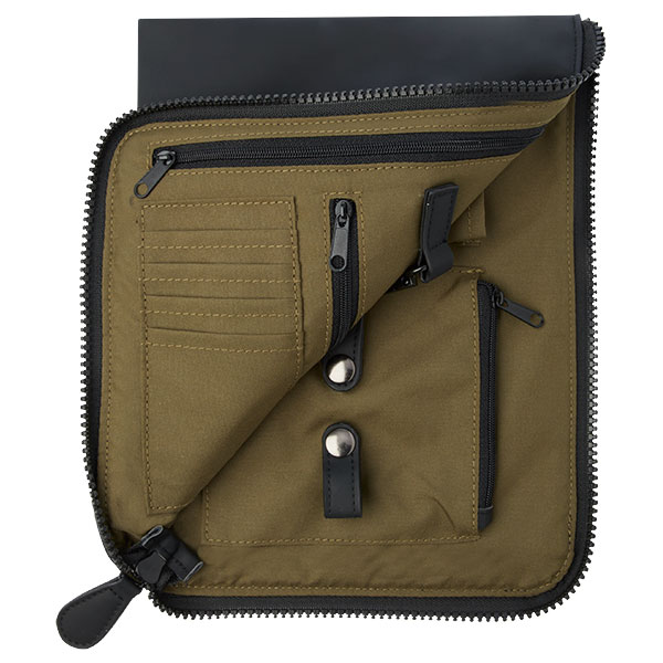 Multiple small inner pockets, pen loops and clips for organisation