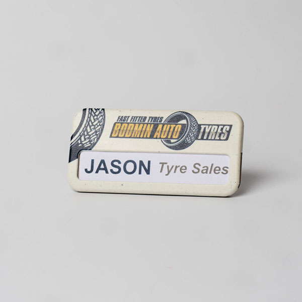 Recycled rectangular windowed badge